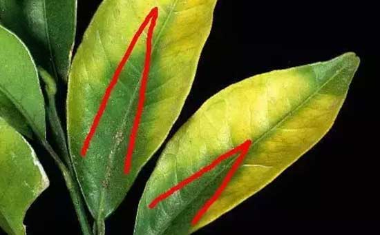 镁元素对柑橘而言,不像氮磷钾大量元素的需求那么急切,因此,日常施肥时,一般施肥量不会太大,但由于南方地区多雨,由于雨水的冲刷,导致柑橘植株体内,本来不多的镁元素,给冲刷走,而柑橘体内镁元素减少,因而会出现倒“V”型黄化。